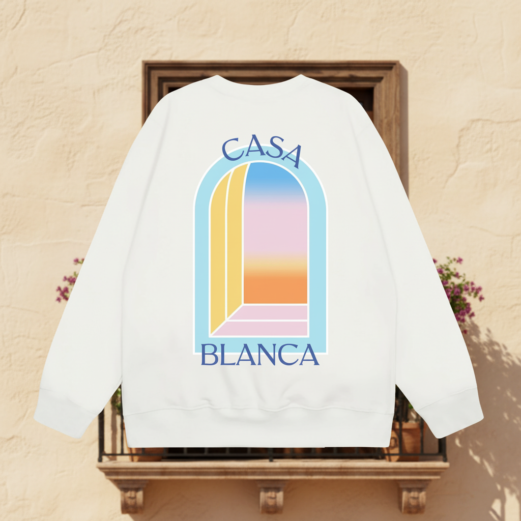 / Casa Blanca White Cotton Crewneck Sweatshirt Unisex Breathable