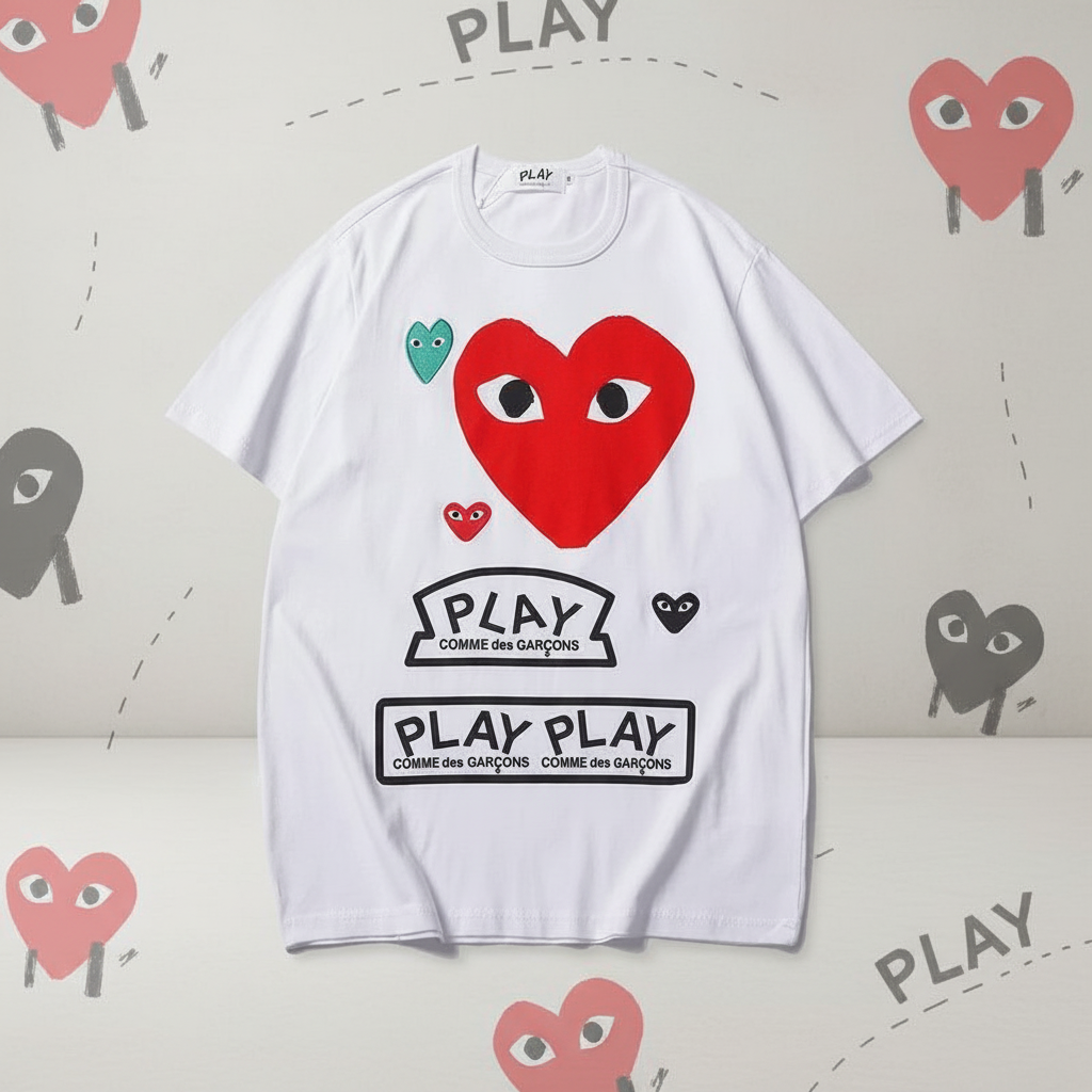 COMME des GARÇONS Play T-Shirt with iconic heart logo print, casual unisex design, premium cotton, perfect for streetwear fashion and everyday style.
