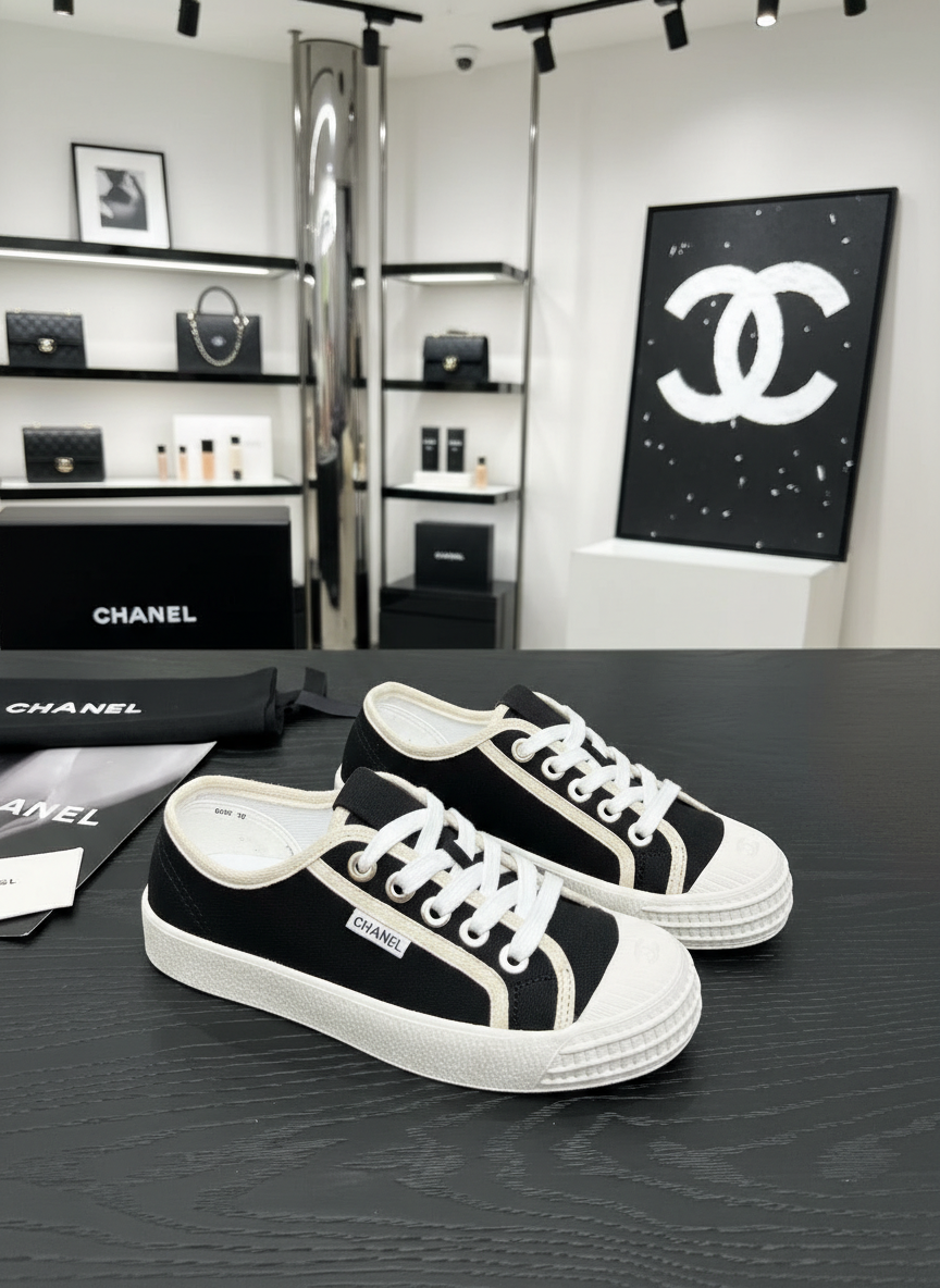 Chanel Black White Canvas Sneakers Casual Shoes