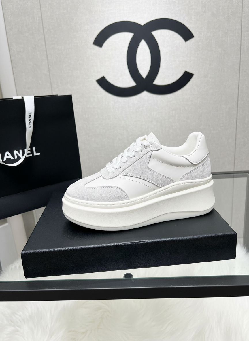 Chanel Platform Sneakers White Leather Casual Shoes