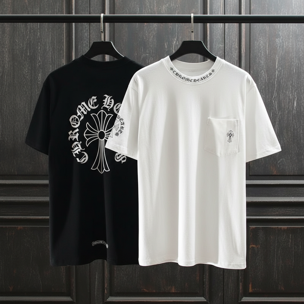 Chrome Hearts T-Shirts, premium cotton tees with iconic cross logo, streetwear style, casual fit, perfect for daily wear and fashion lovers.