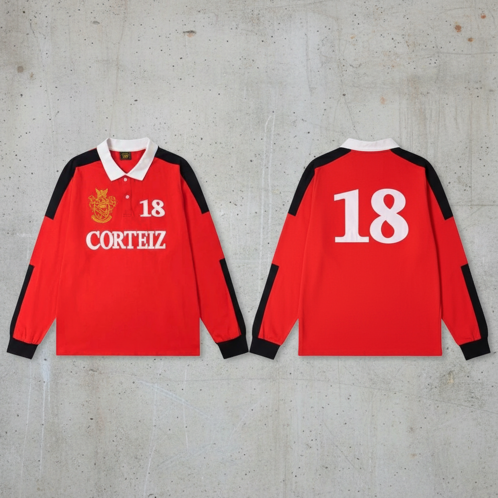 Corteiz 18 Red Long Sleeve Rugby Polo Shirt