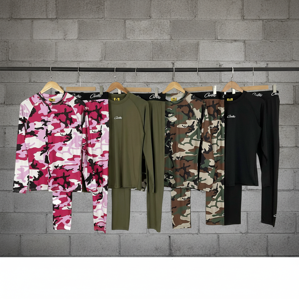 Corteiz men’s long sleeve camo and solid color T-shirt set, stylish streetwear, soft fabric, perfect for casual wear and outdoor activities.