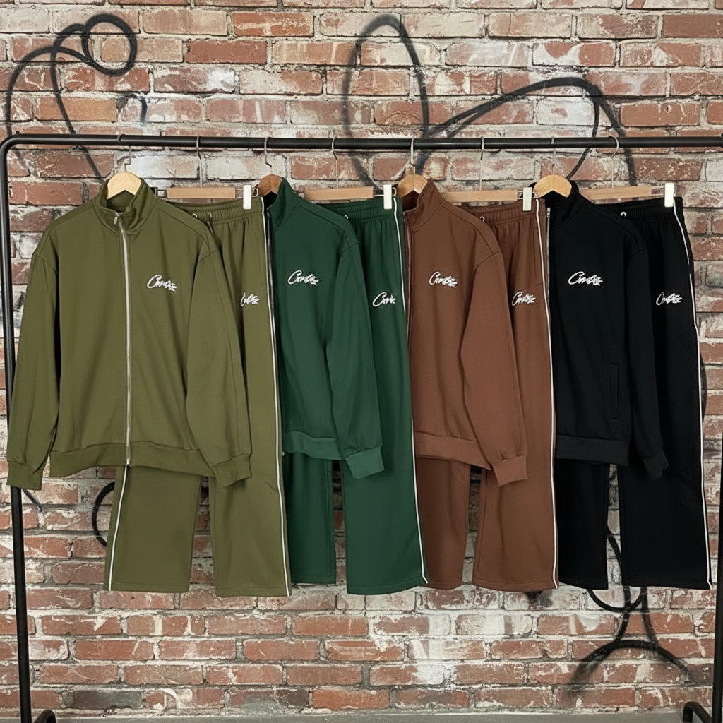 Corteiz Men’s Tracksuit Set, Zip-Up Jacket and Matching Pants, Casual Sportswear in Multiple Colors for Streetwear and Fitness
