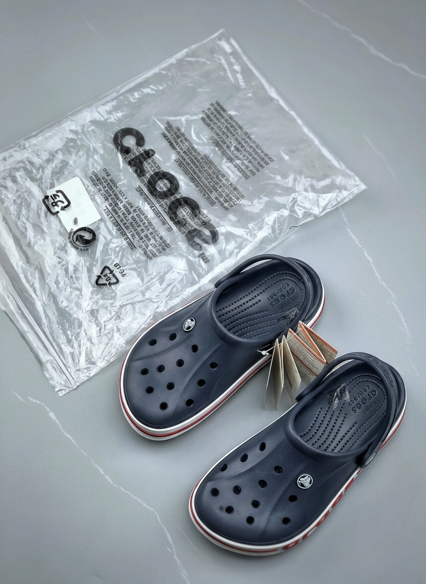 Crocs Classic Navy Clogs, lightweight breathable slip-on sandals with ventilation ports, comfortable cushioned sole, perfect for casual wear, beach, garden, and outdoor activities.
