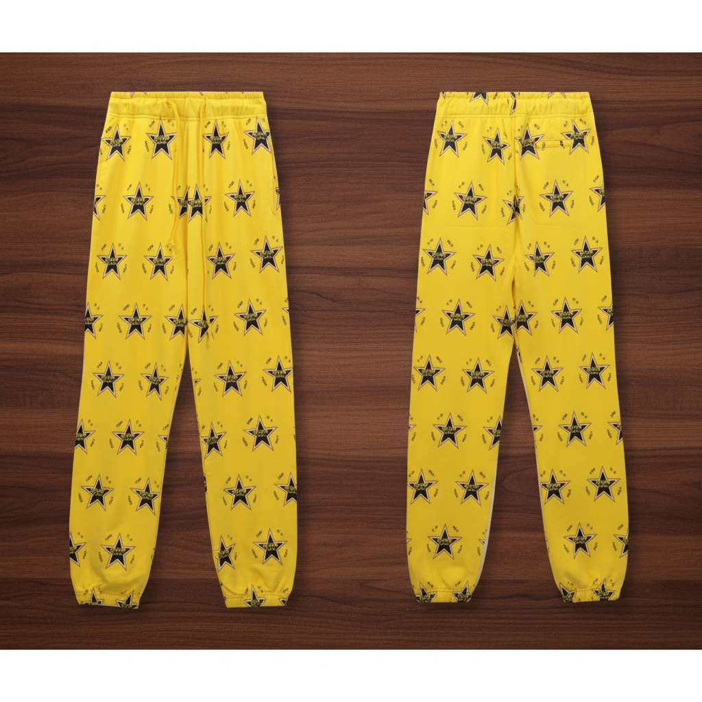 Denim Tears 24SS Yellow Hoodie & Pants Set, Star Print