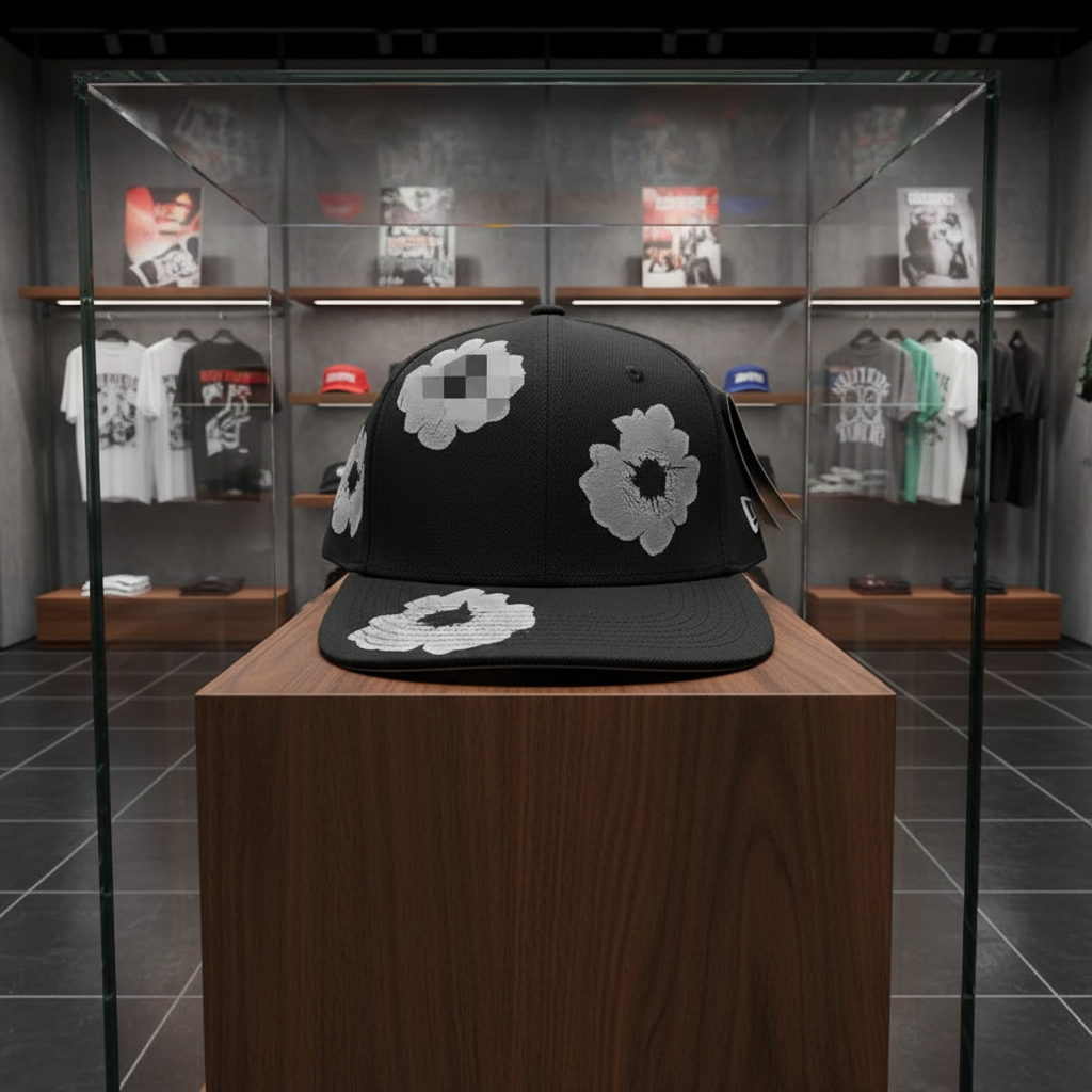 / Denim Tears D.T Black Cotton Street Sun Protection Flat Cap