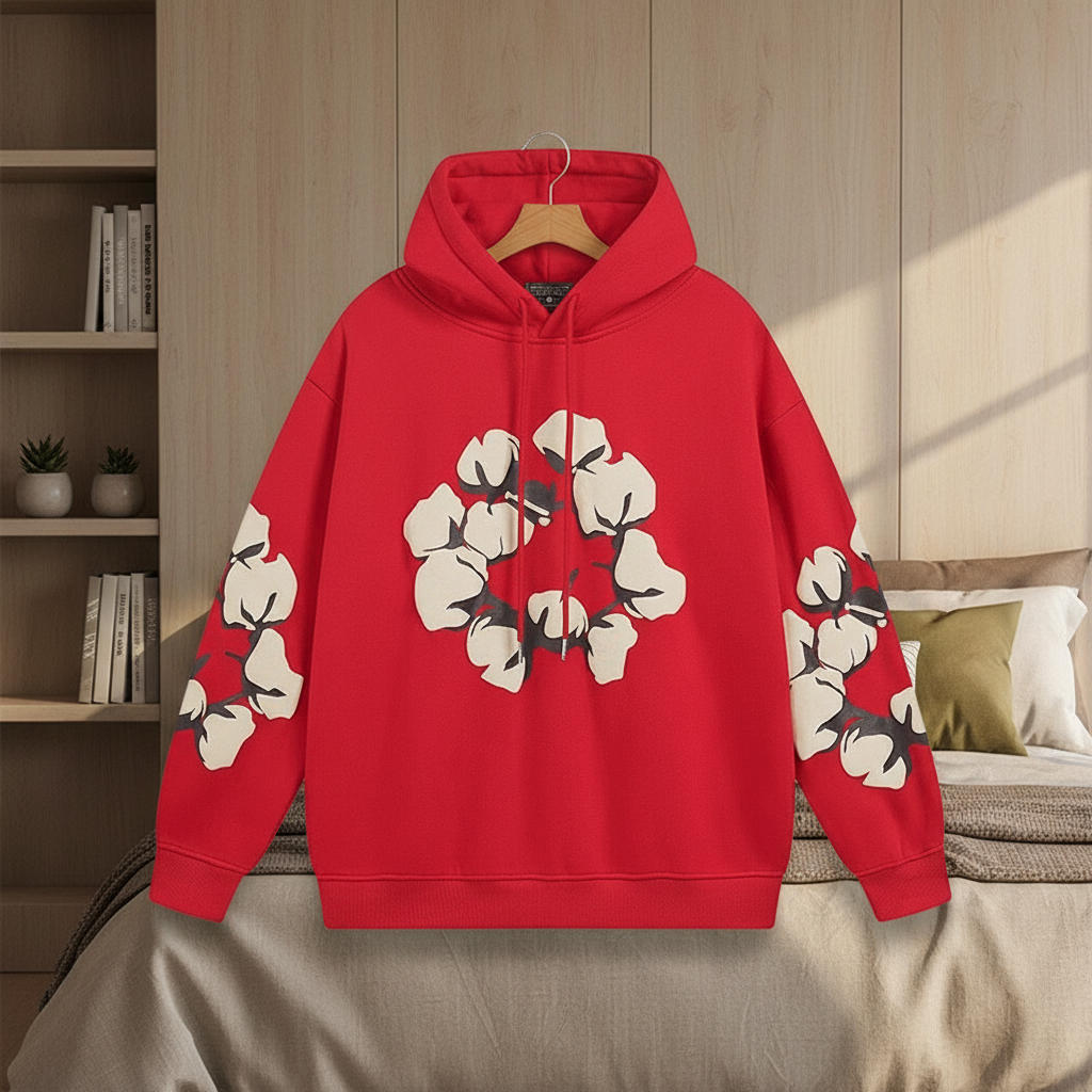 / Denim Tears Red Kapok Hoodie – Cotton Fleece, Unisex Streetwear