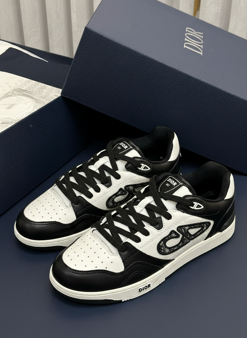 Dior black and white leather sneakers with logo detail, premium craftsmanship, stylish design, and comfortable fit for casual or streetwear fashion.