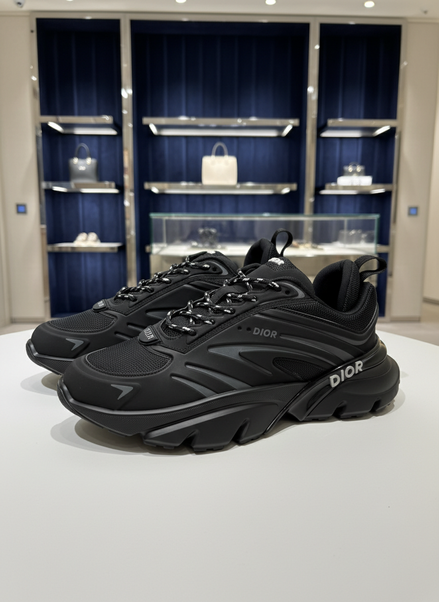 Dior Men’s Black Chunky Sneakers, stylish luxury design with mesh and leather details, durable sole, perfect for casual and streetwear fashion.
