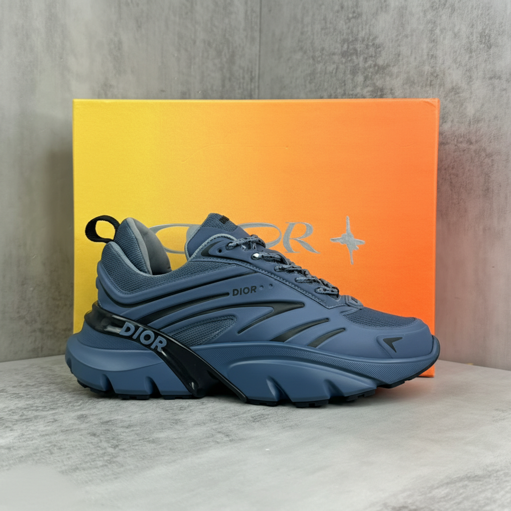 Dior Men’s Chunky Sneakers in Blue, Stylish Designer Running Shoes with Thick Sole, Trendy Luxury Footwear for Streetwear and Casual Outfits