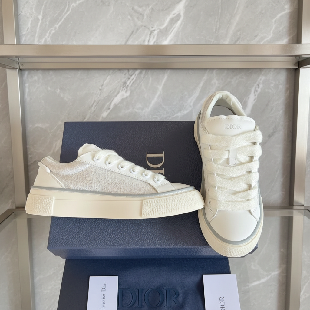 Dior Women’s White Canvas Low-Top Sneakers, luxury designer casual shoes with signature logo detail, comfortable fit, and stylish thick sole for everyday wear.