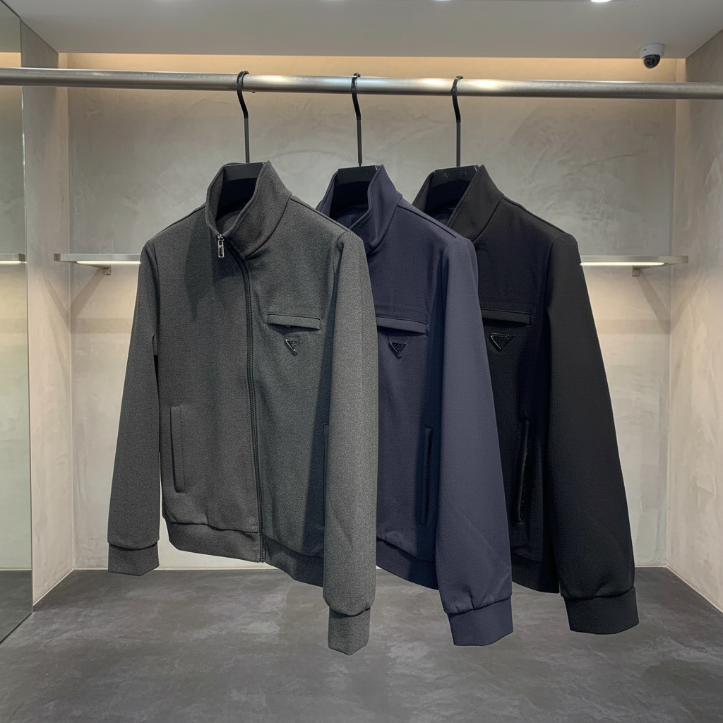 Dior Men’s Zip-Up Jackets, stylish high-neck design with chest pocket, available in grey, navy, and black, perfect for casual or semi-formal wear.