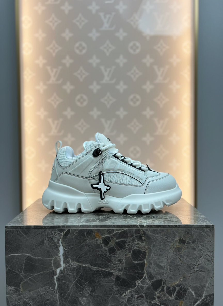 Dior Luxury Chunky Sneakers, stylish white design with textured panels, durable thick sole and modern charm detail, perfect for casual wear and fashion-forward looks.