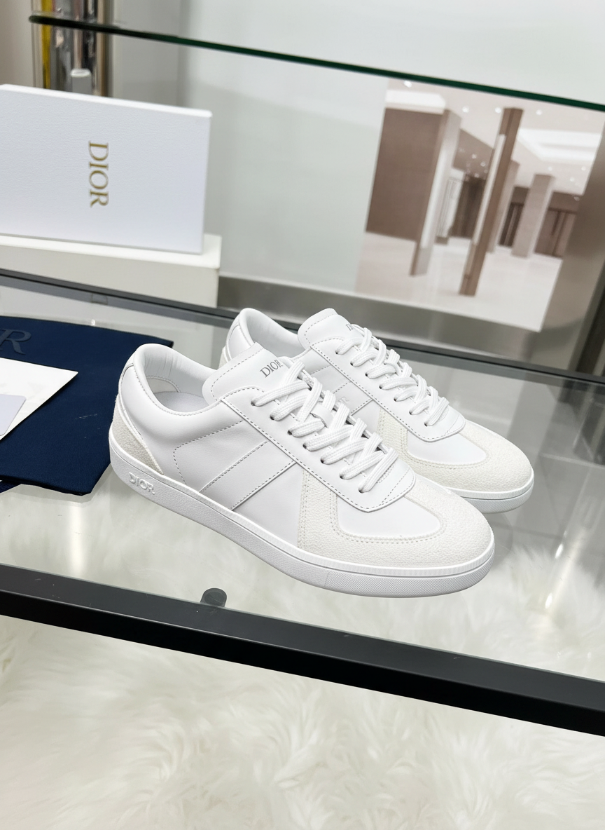Dior White Leather Sneakers, stylish low-top design with premium materials, perfect for casual wear and luxury fashion enthusiasts.