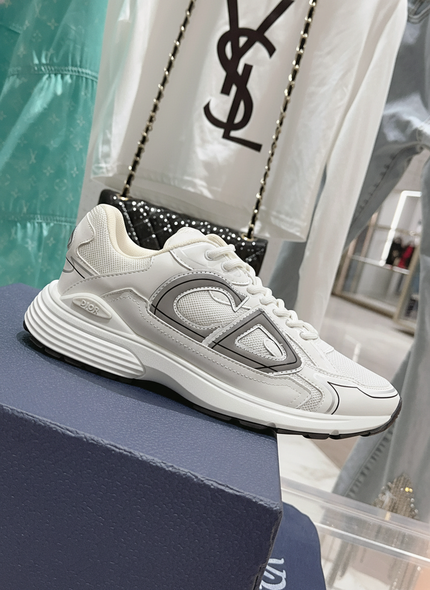 Dior white mesh and leather sneakers, stylish and comfortable design, perfect for casual wear, featuring signature logo detailing and durable sole for everyday fashion.