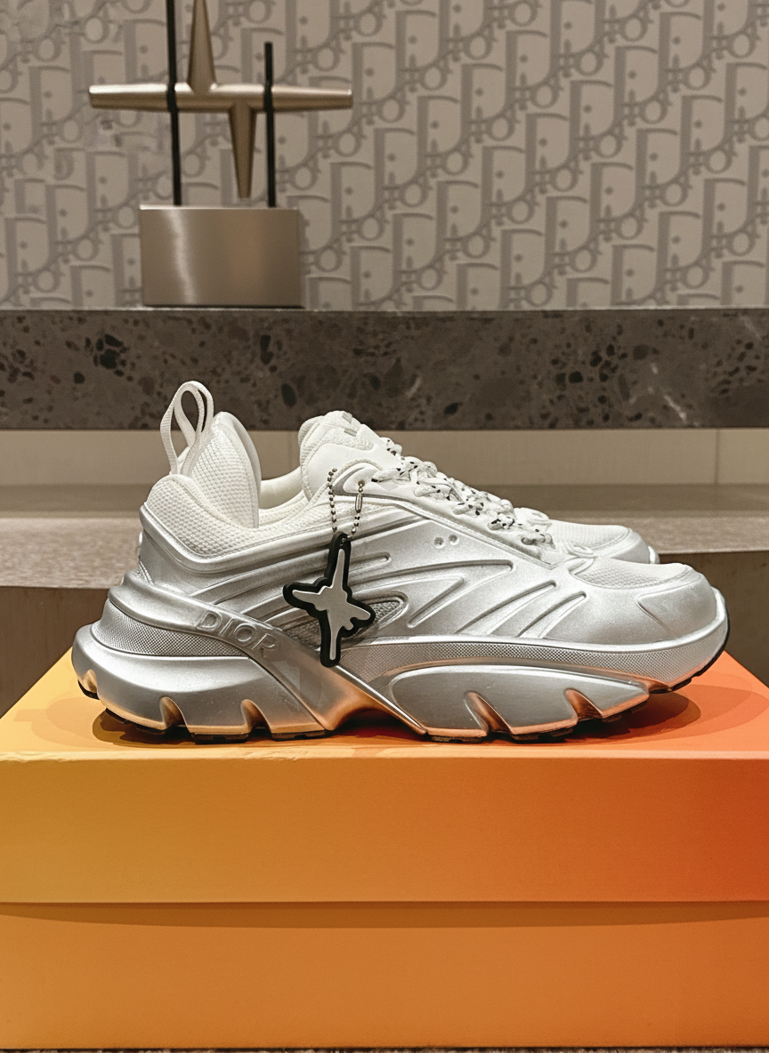 Dior Silver Chunky Sneakers, stylish designer shoes with breathable mesh, durable sole, and modern fashion appeal for casual wear and street style.