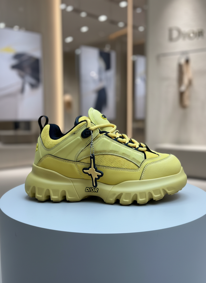Dior Yellow Chunky Sneakers for Men, stylish designer footwear with durable sole, breathable upper, and bold modern look, perfect for streetwear and casual fashion.