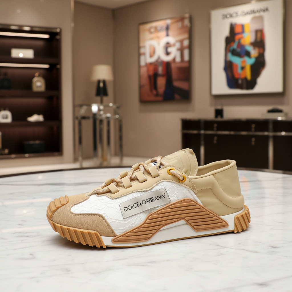 Dolce & Gabbana Beige White Fashion Sneakers