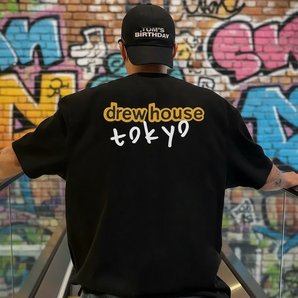 Drew House Tokyo Black T-Shirt, stylish streetwear with unique graphic print, perfect for casual wear and trendy urban fashion lovers.