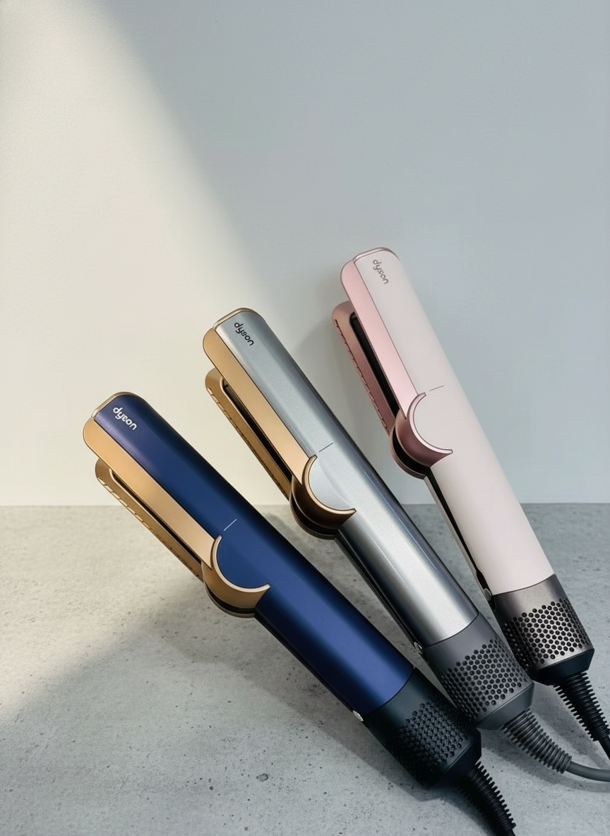 Dyson Hair Straightener in Tibetan Blue, Copper Silver, and Rose Pink – professional styling with sleek design and advanced technology.