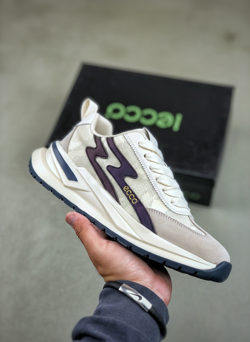 ECCO Retro Beige Purple Leather Sneakers