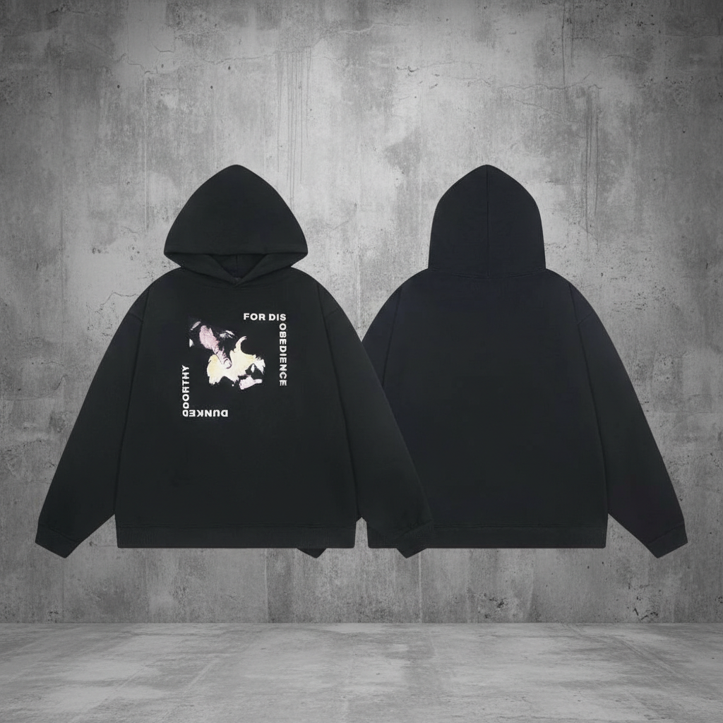 Enfants Riches Déprimés black graphic hoodie, premium streetwear with artistic print, soft cotton, oversized fit for casual fashion lovers.