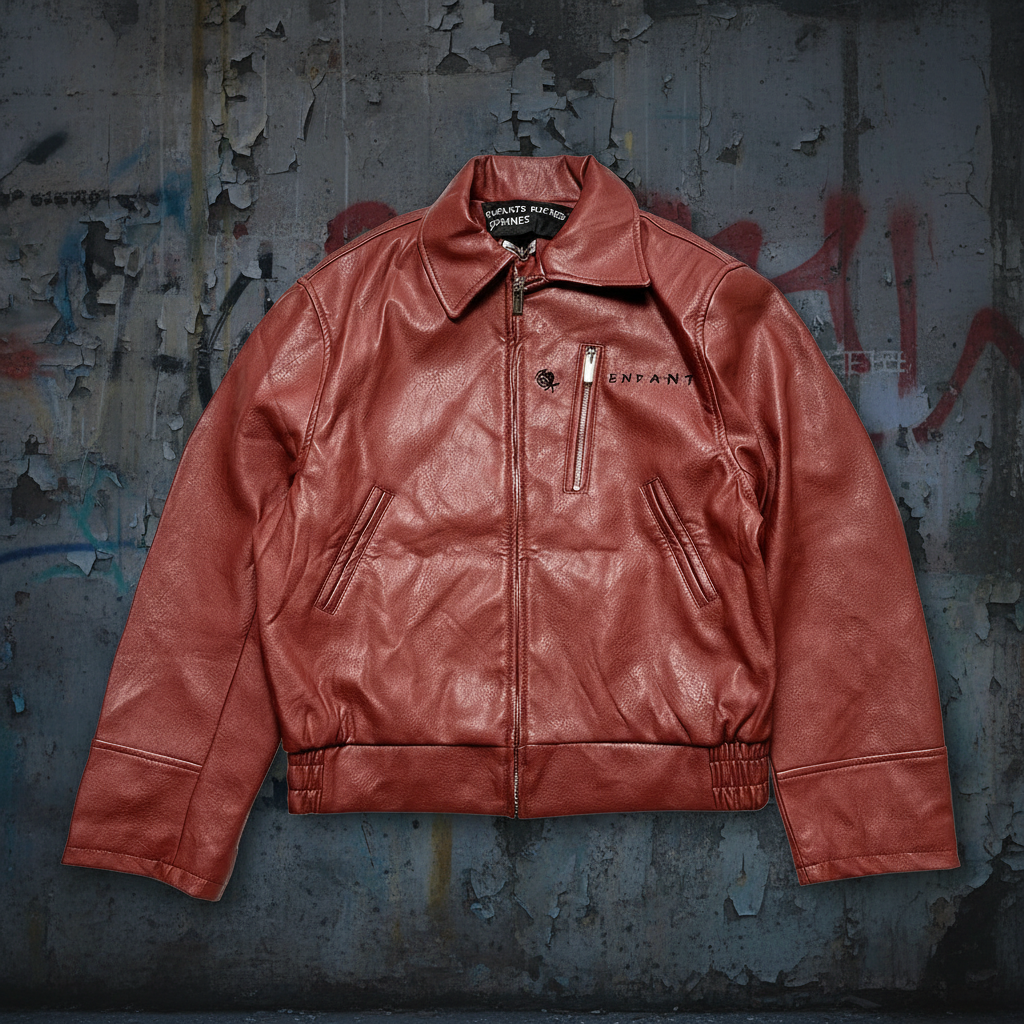 Enfants Riches Déprimés red leather jacket with front zipper, chest pocket, and side pockets, offering luxury streetwear style and premium craftsmanship for fashion-forward looks.