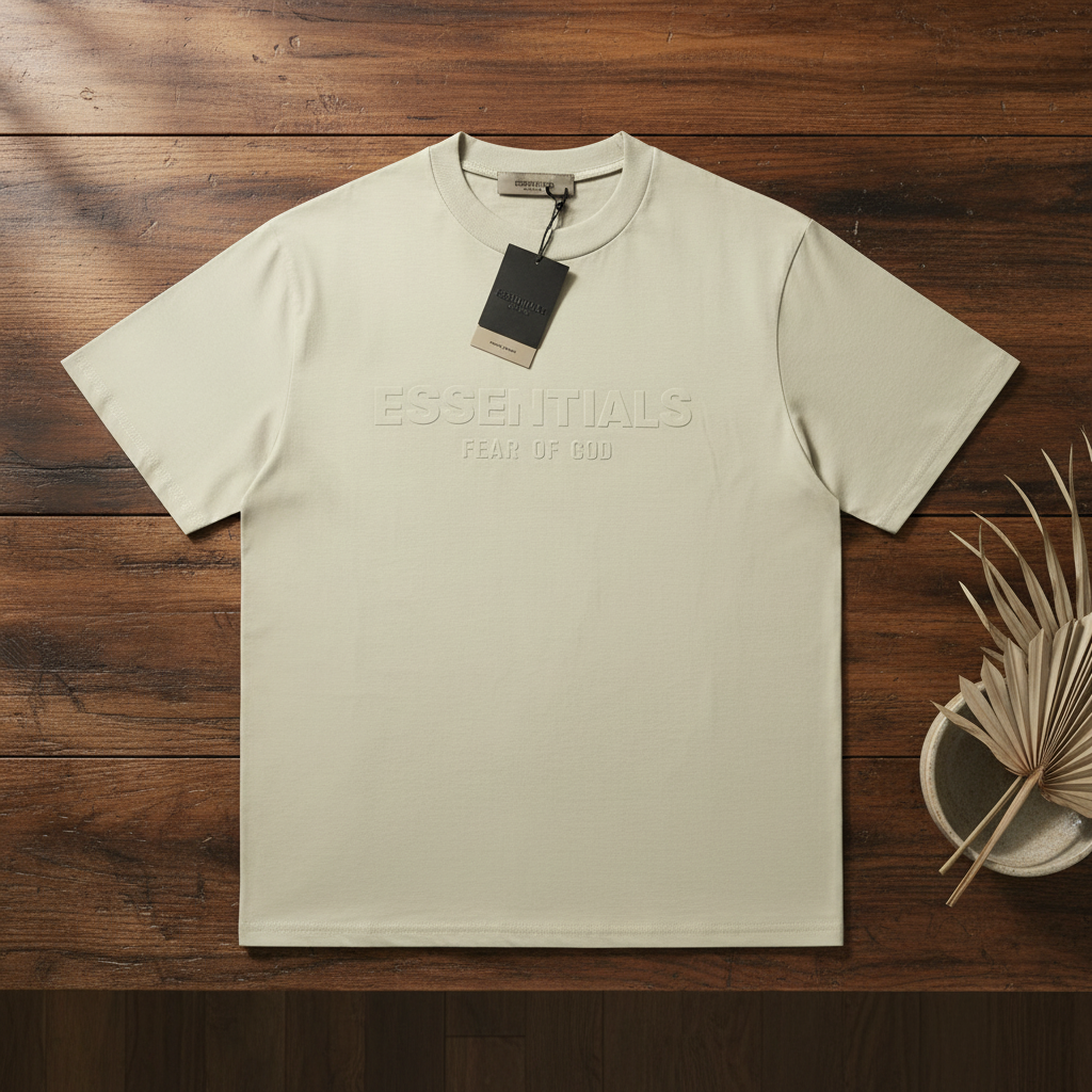 ESSENTIALS 23SS Light Beige Flocked T-Shirt – Unisex Oversized Fit