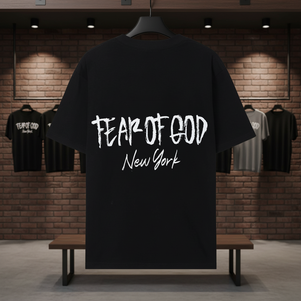 / ESSENTIALS Fear of God NYC Black Tee: Relaxed Streetwear