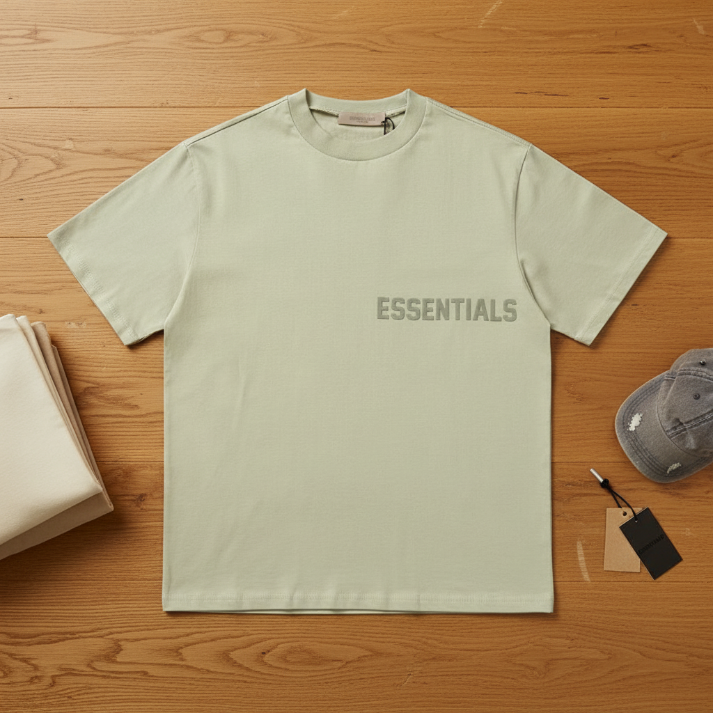 Essentials FOG Crewneck Tee: Soft Cotton Tee, Flocked Logo