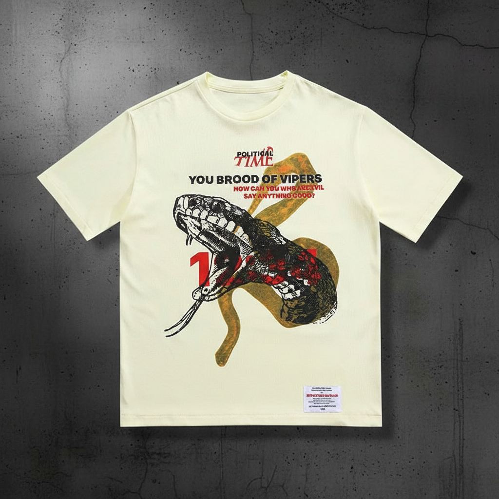 RWNOTORY Graphic Snake Print T-Shirt, Soft Cotton Tee with Bold Political and Viper Design, Streetwear Style for Men and Women.