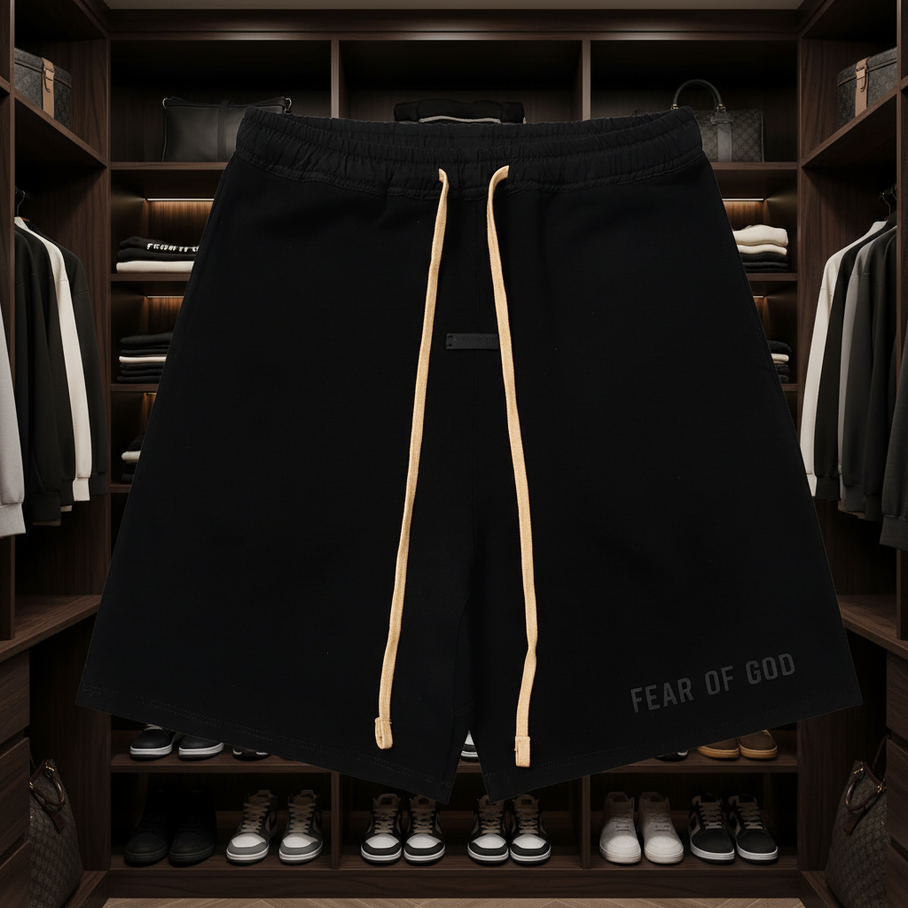 / Fear of God Essentials Black Cotton Shorts Unisex Streetwear