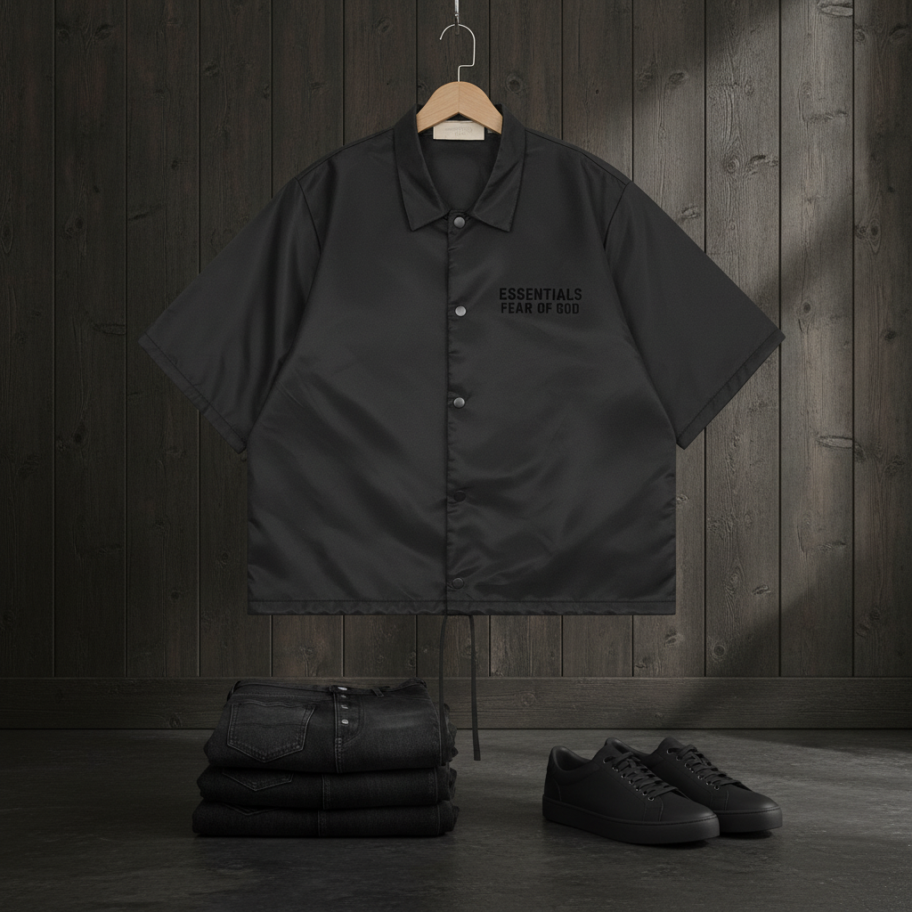 / FEAR OF GOD ESSENTIALS Black Short Sleeve Shirt Unisex Streetwear