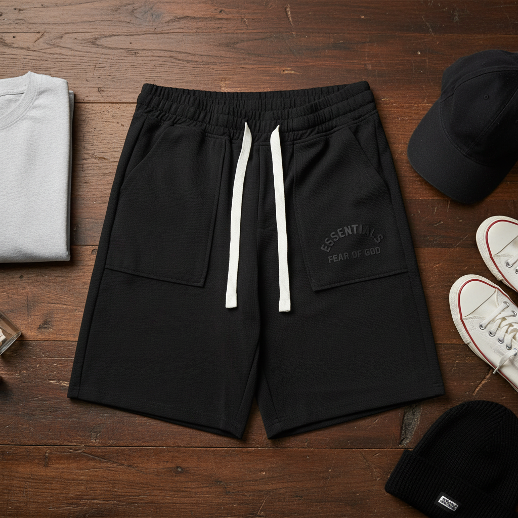 Fear of God ESSENTIALS Black Shorts: Unisex, Breathable, Drawstring