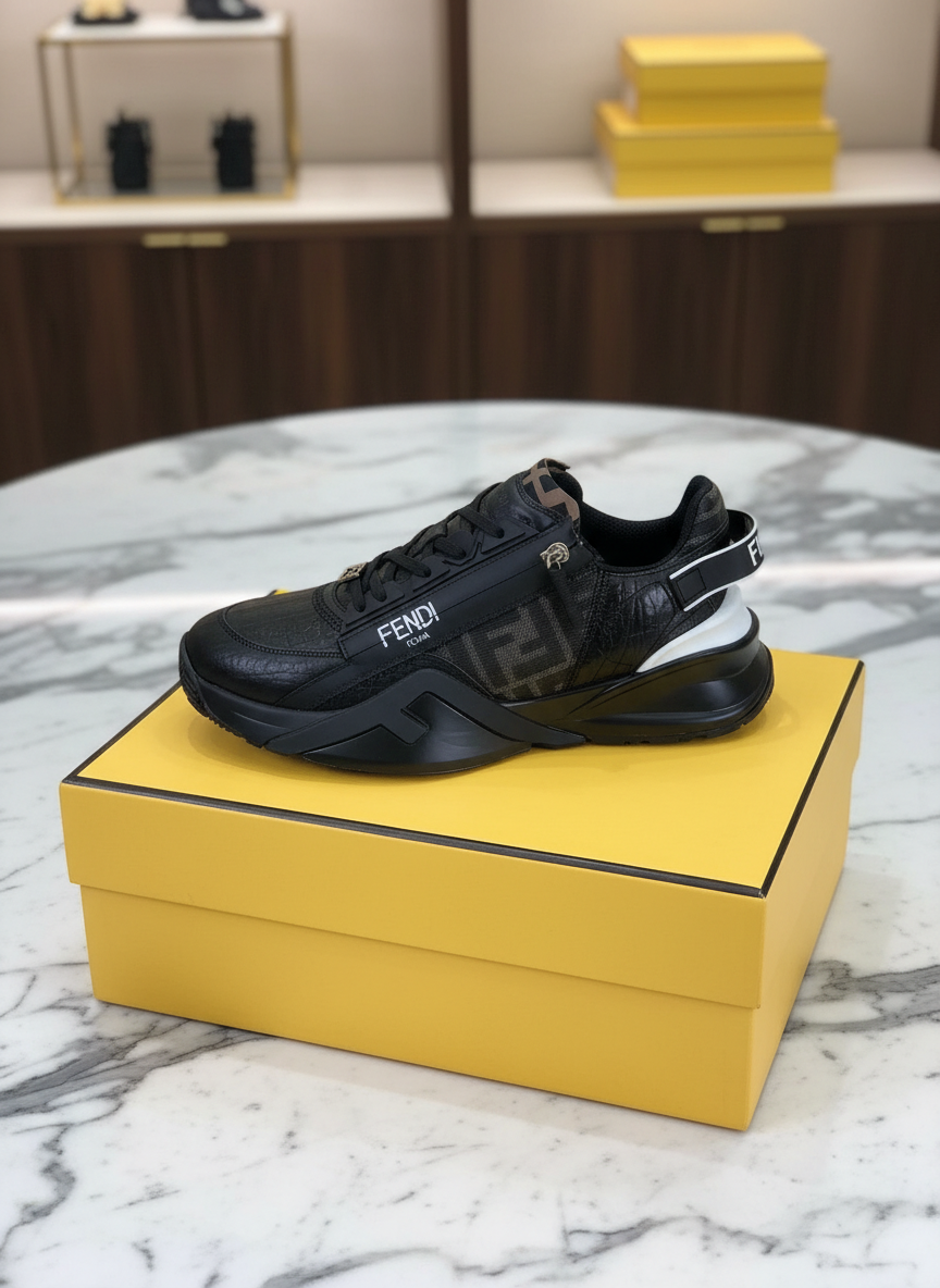 Fendi Black Leather Fashion Sneakers for Men