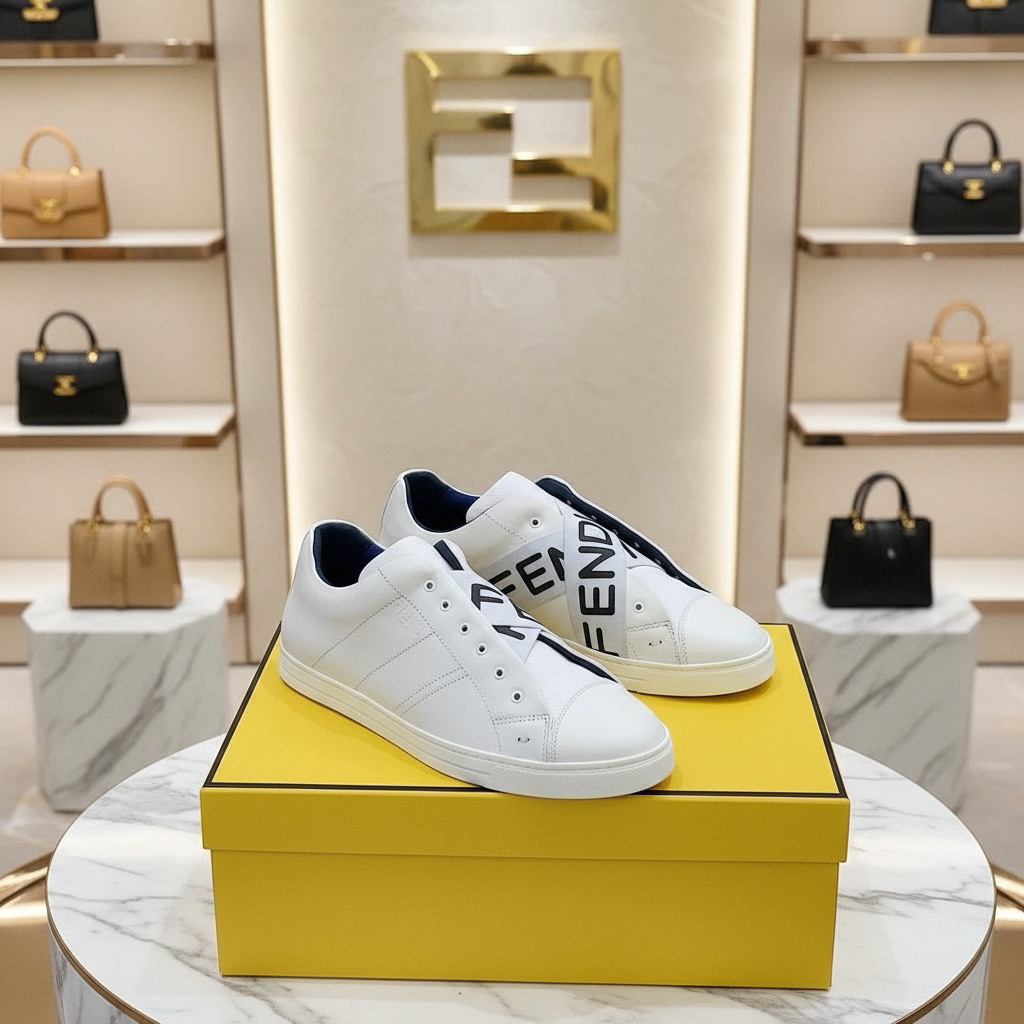 Fendi White Leather Sneakers with Bold Logo Design, Luxury Casual Shoes for Men and Women, Stylish Comfort for Everyday Wear