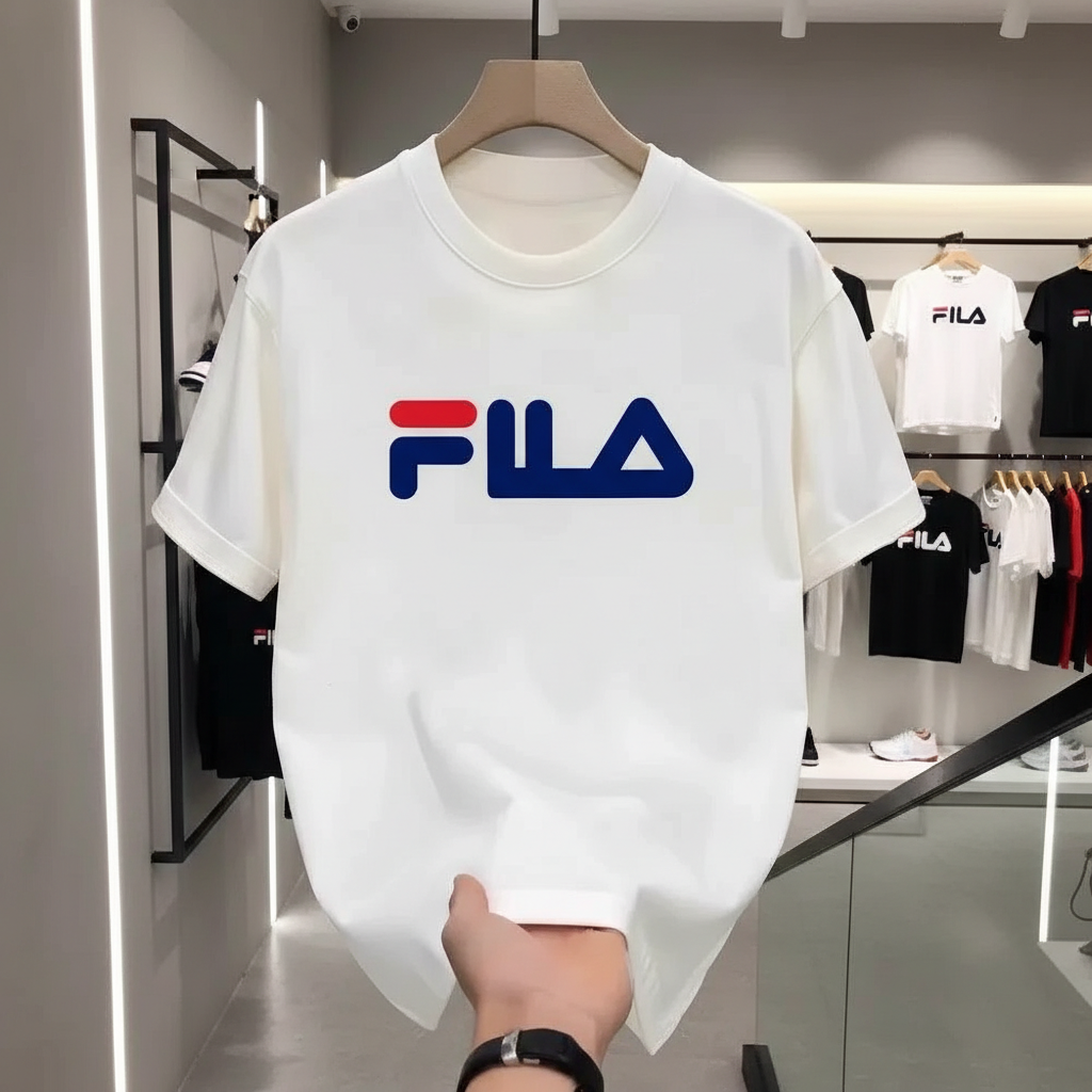 FILA Classic White Logo T-Shirt, casual short sleeve top, premium cotton, sporty style for men and women, perfect for everyday wear and outdoor activities.