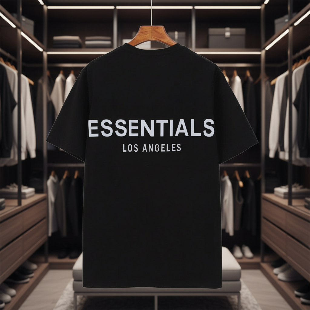 FOG ESSENTIALS Black Reflective Tee: Unisex Cotton Streetwear