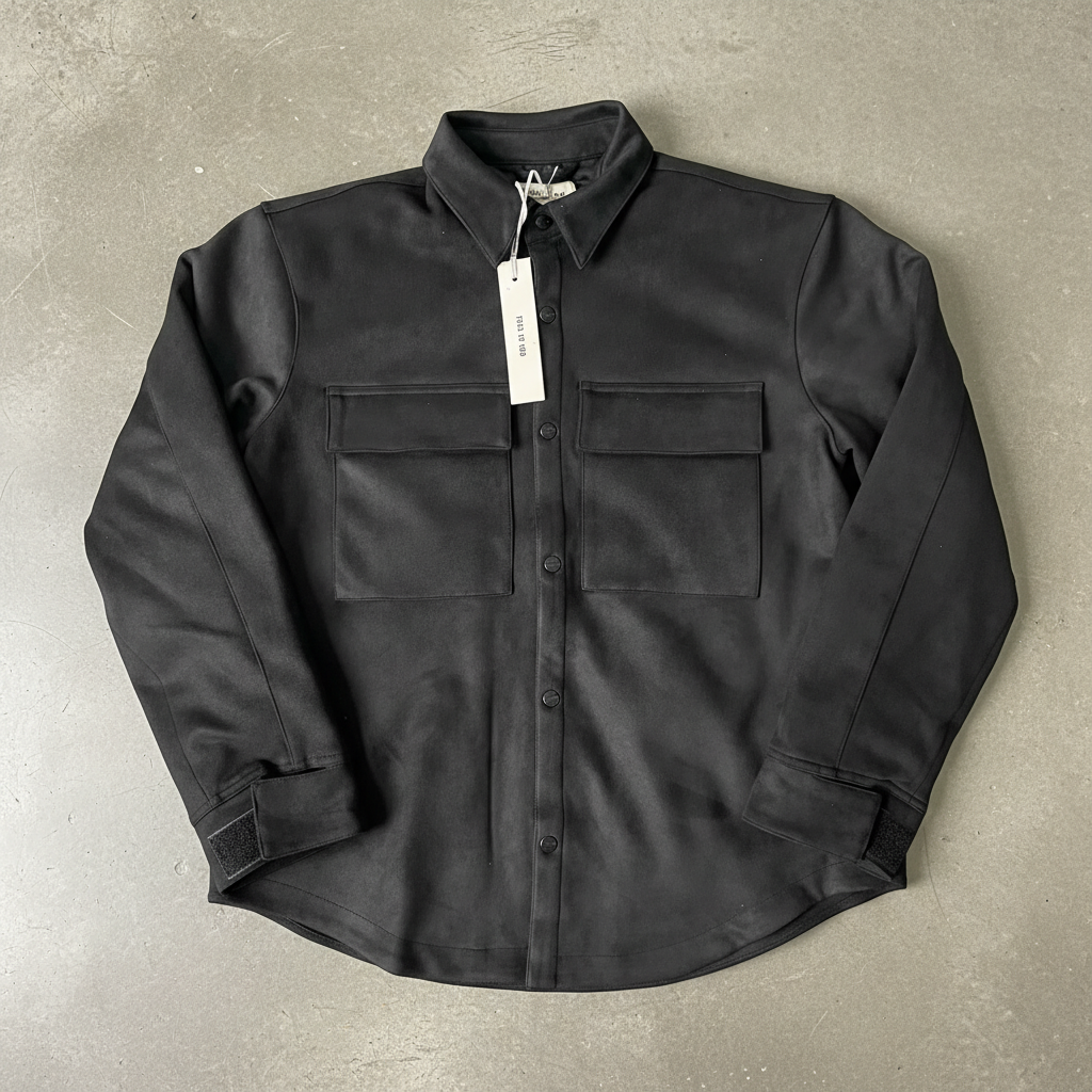 JacketsFOG Men’s Black Faux Suede Shirt Jacket with Front Pockets, Button Closure, Casual Streetwear Style for All Seasons
