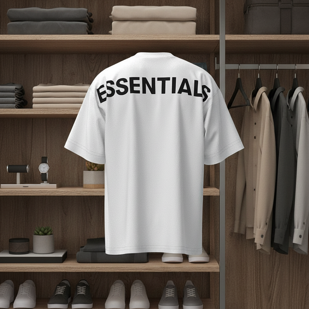 FOG ESSENTIALS White Cotton T-Shirt: Summer Unisex Tee with Back Print