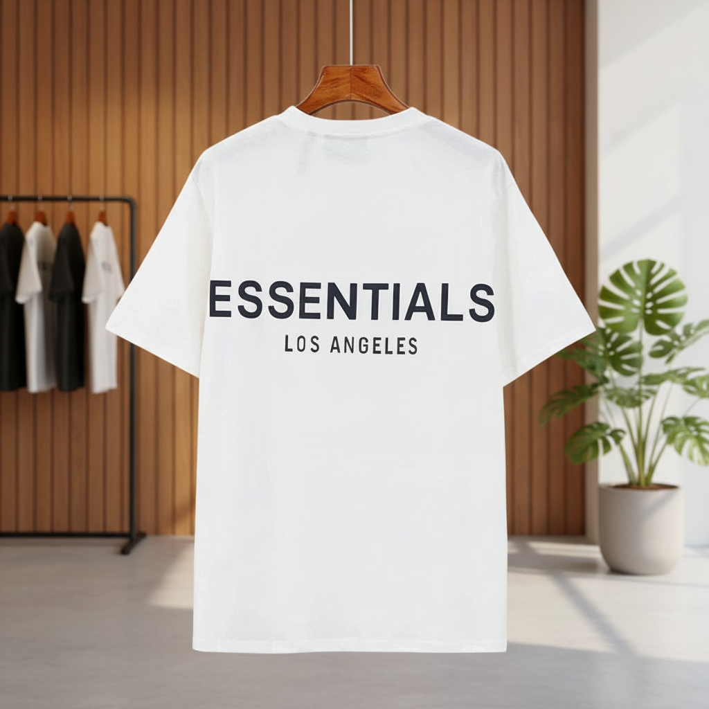 / FOG Essentials White Reflective Tee: Unisex Cotton Streetwear