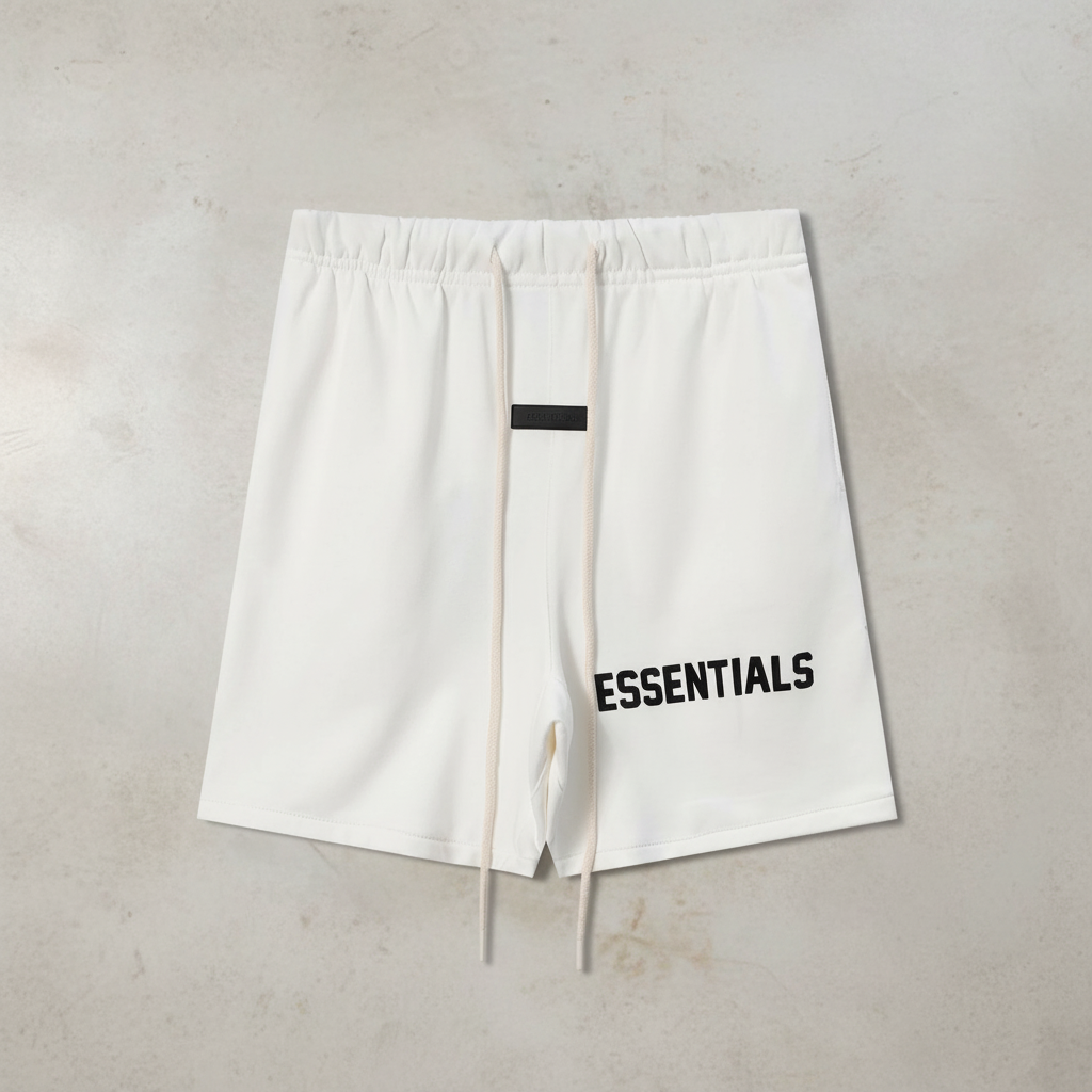 / FOG Essentials White Shorts: Unisex, Drawstring Waist, Casual