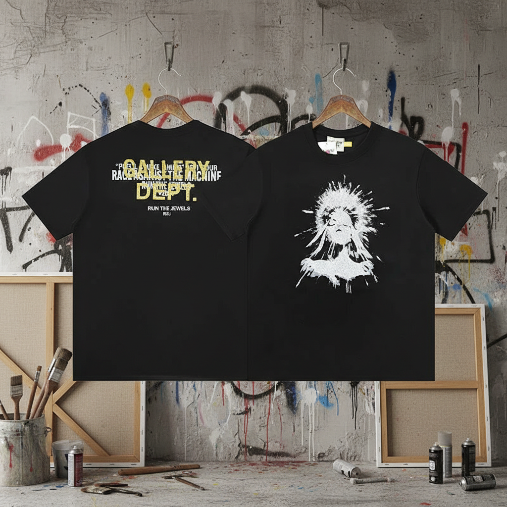 Gallery Dept T-Shirt, stylish black tee featuring bold graphic print and signature logo design, made from premium cotton for comfort and streetwear fashion appeal.