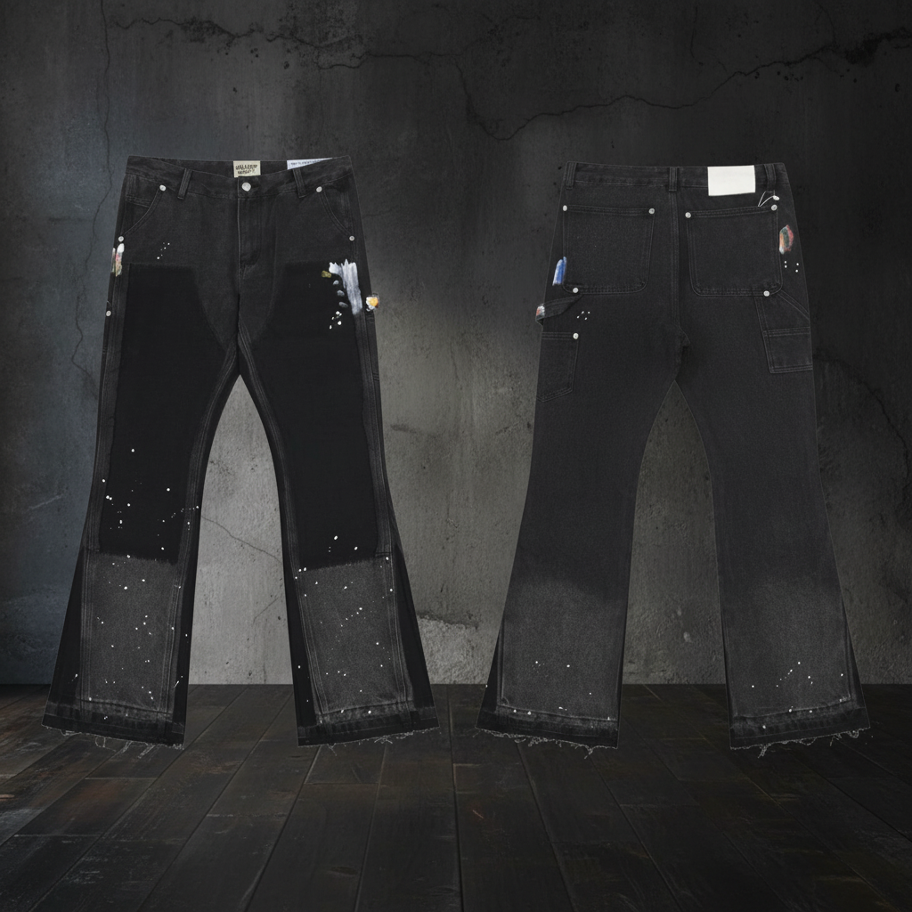 Gallery Dept Black Paint-Splash Camo Flare Jeans, Unisex Streetwear