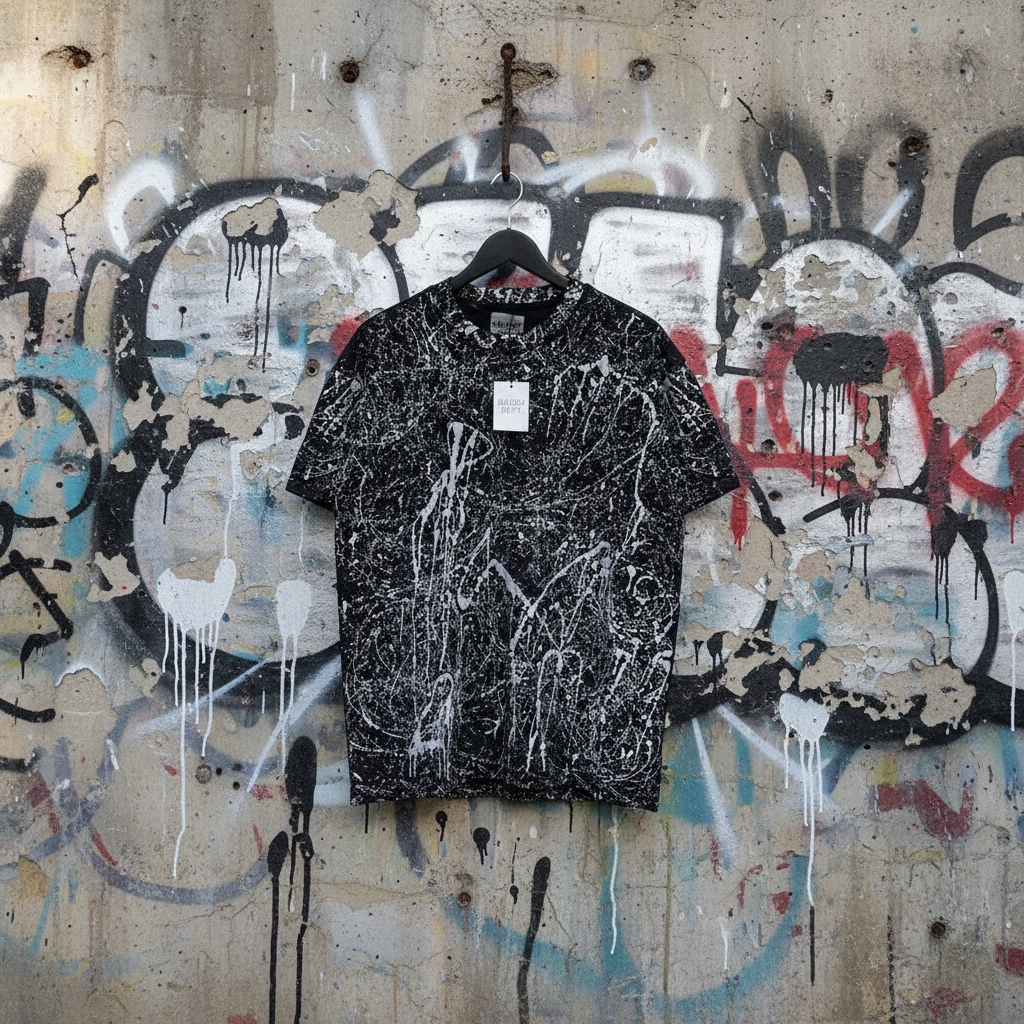 Gallery Dept. Black Paint Splash T-Shirt, premium cotton tee with artistic abstract splatter design, stylish streetwear for men and women, casual fashion top