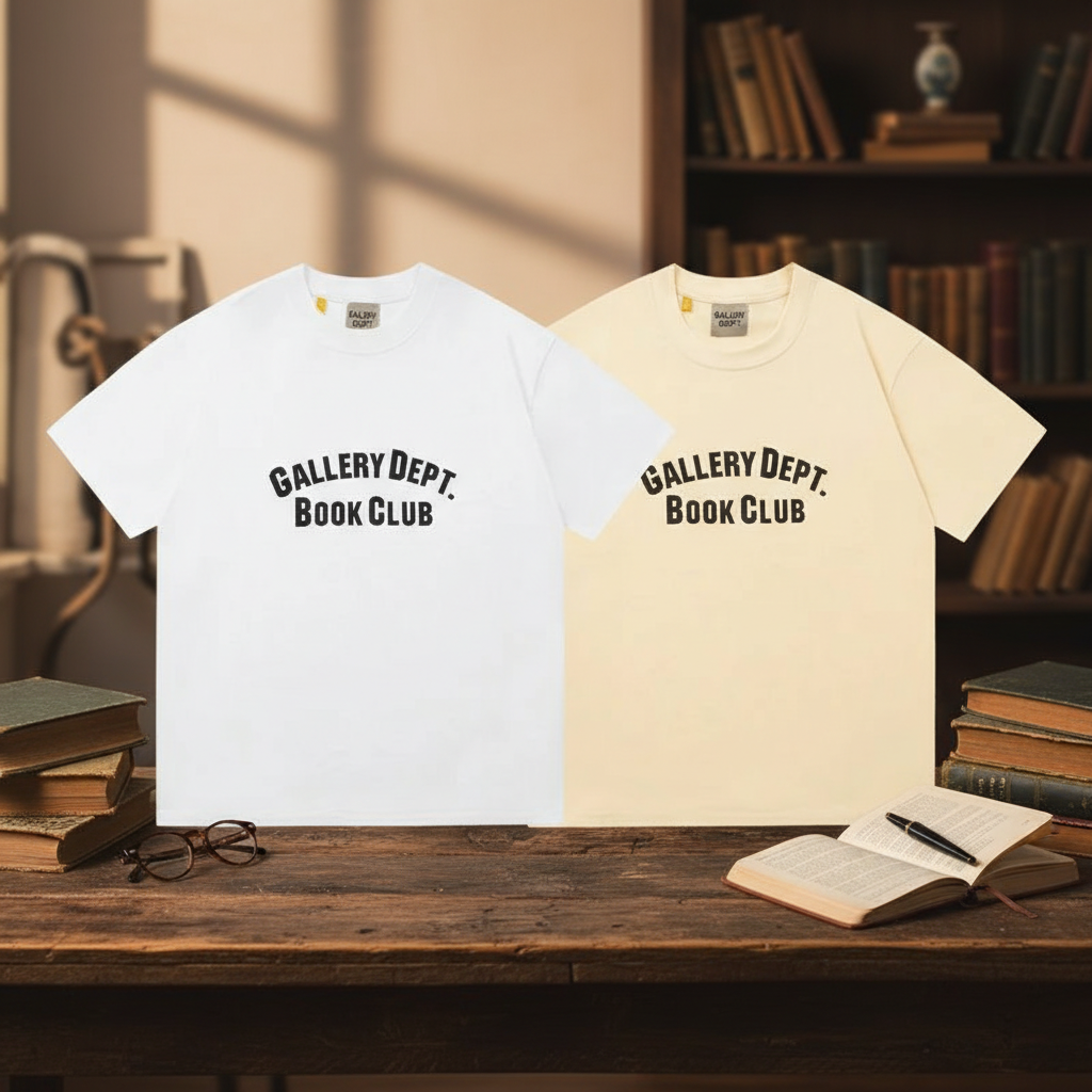 Gallery Dept Book Club T-Shirt, trendy unisex cotton tee with minimalist logo design, soft breathable fabric for casual streetwear style, perfect for everyday fashion.