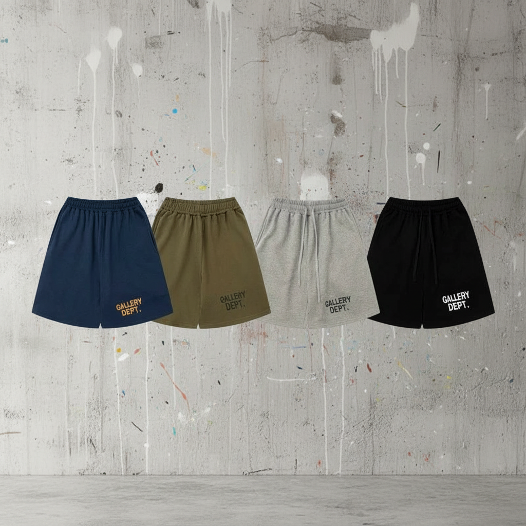 Gallery Dept casual shorts for men, lightweight and stylish, perfect for streetwear, sports, and summer outfits in navy, olive, grey, and black.