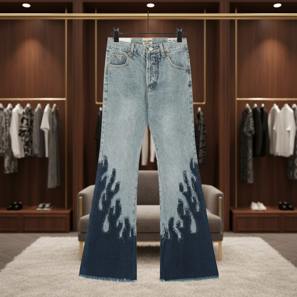 Gallery Dept Flame Flare Jeans: Gradient Distressed Denim