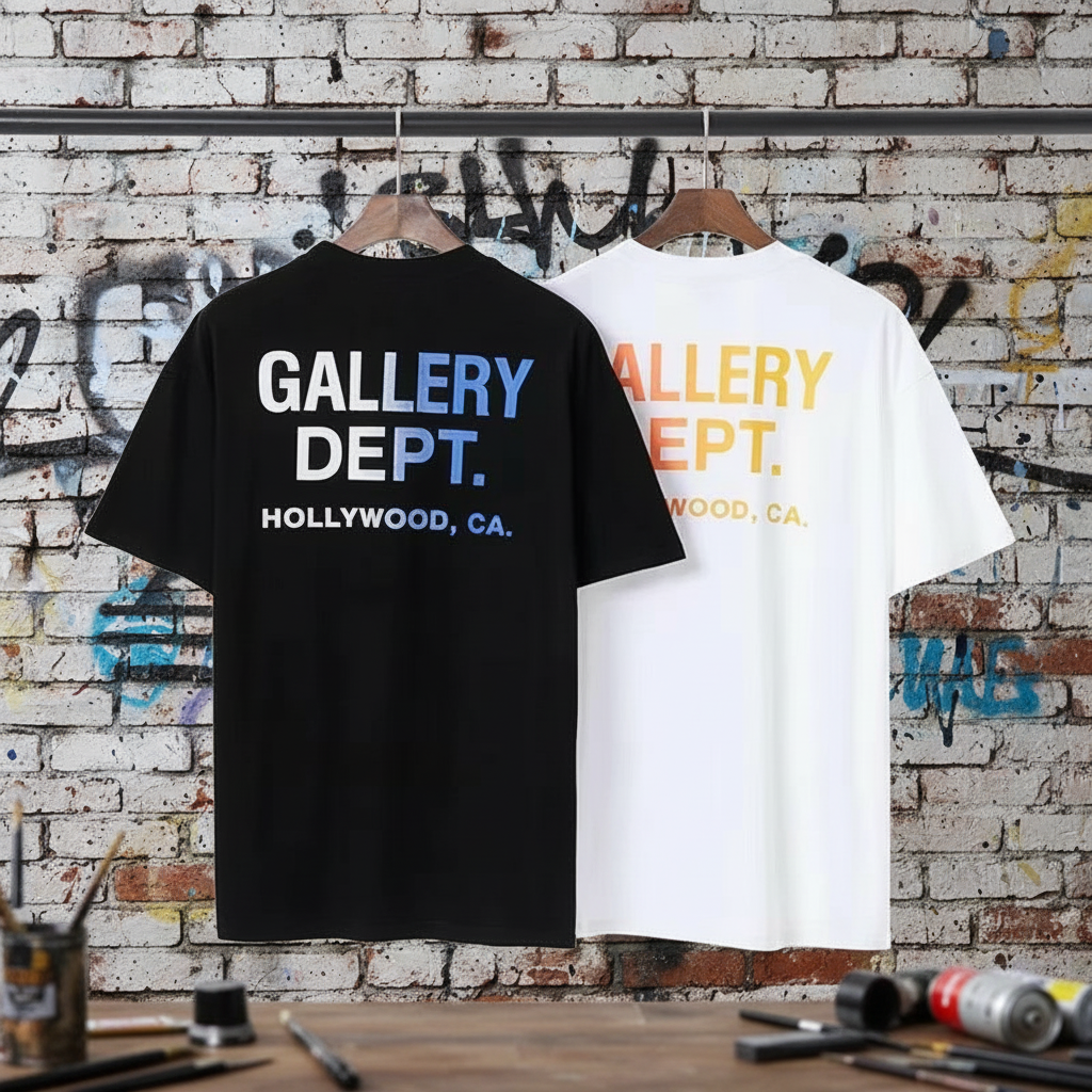 Gallery Dept T-Shirt, casual unisex streetwear with bold back logo print, short sleeve cotton top, perfect for everyday fashion and urban style outfits.